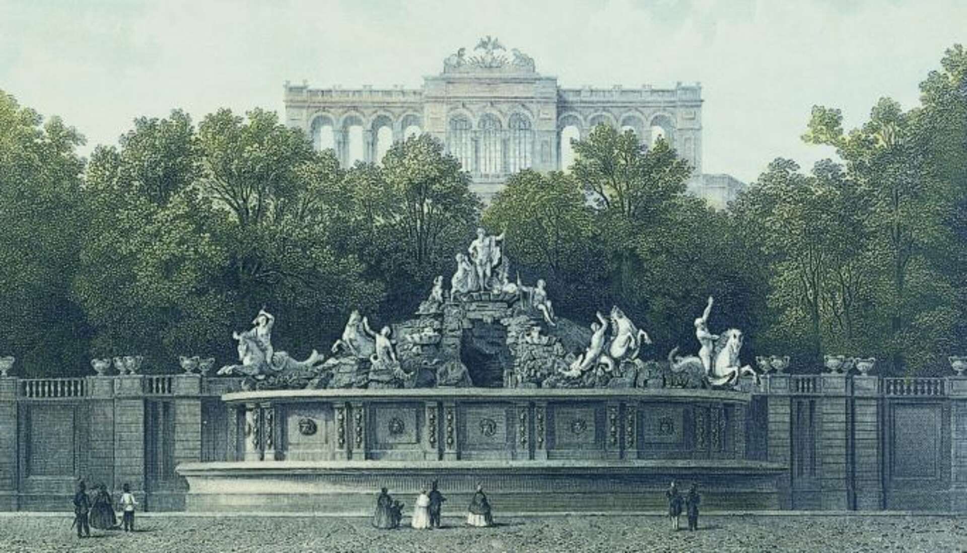 Als letztes Projekt nahm die Kaiserin in den 1770er Jahren die Ausgestaltung des Gartens unter der Leitung des Hofarchitekten Johann Ferdinand Hetzendorf von Hohenberg in Angriff, der dem Schönbrunner Park mit der Errichtung der Gloriette, des Neptunbrunnens, der Römischen Ruine und des Obelisken seine architektonischen Akzente verlieh. Zudem wurden die Alleen, Brunnen und Plätze mit zahlreichen antiken Statuen und Skulpturen, ausgeführt von Wilhelm Beyer und seiner Werkstatt, bereichert. Die Umgestaltung des Schlosses und des Gartens kam erst kurz vor dem Tod Maria Theresias 1780 zum endgültigen Abschluss.