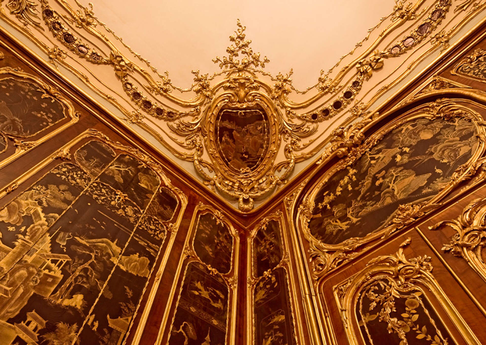 So entstanden im Zuge der Neuausstattung der Großen und Kleinen Galerie auch die beiden daran angrenzenden Chinesischen Kabinette (1754 – 1759) sowie das Porzellanzimmer und das sogenannte Millionenzimmer (1763 – 1765).