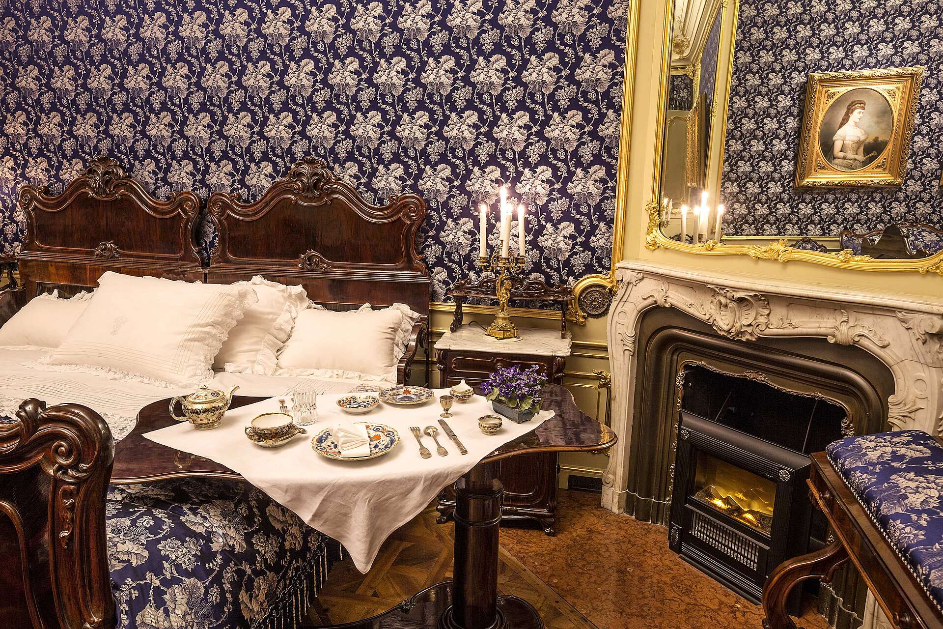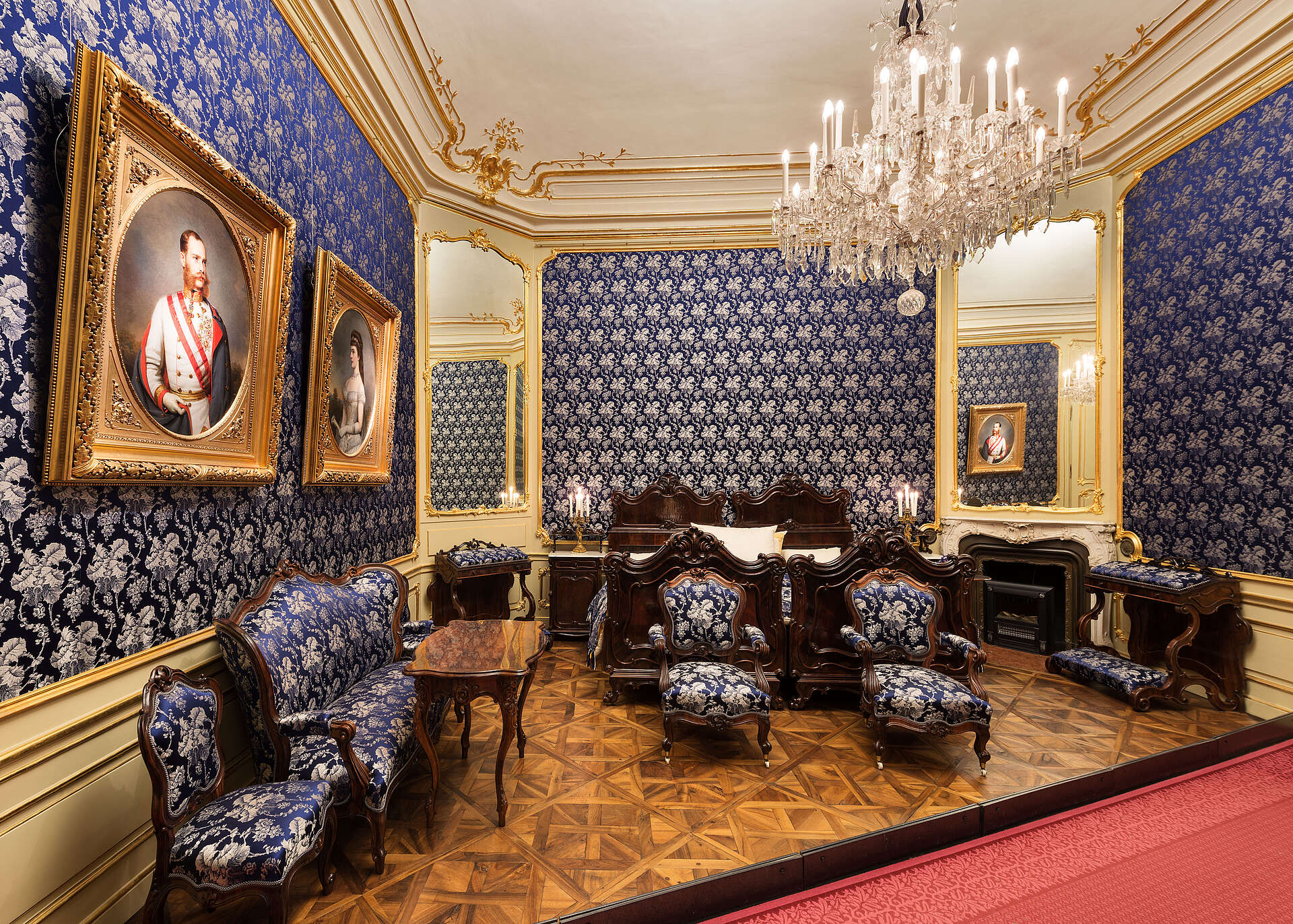 Das gemeinsame Schlafzimmer wurde 1854 für das Kaiserpaar anlässlich der Vermählung eingerichtet.
